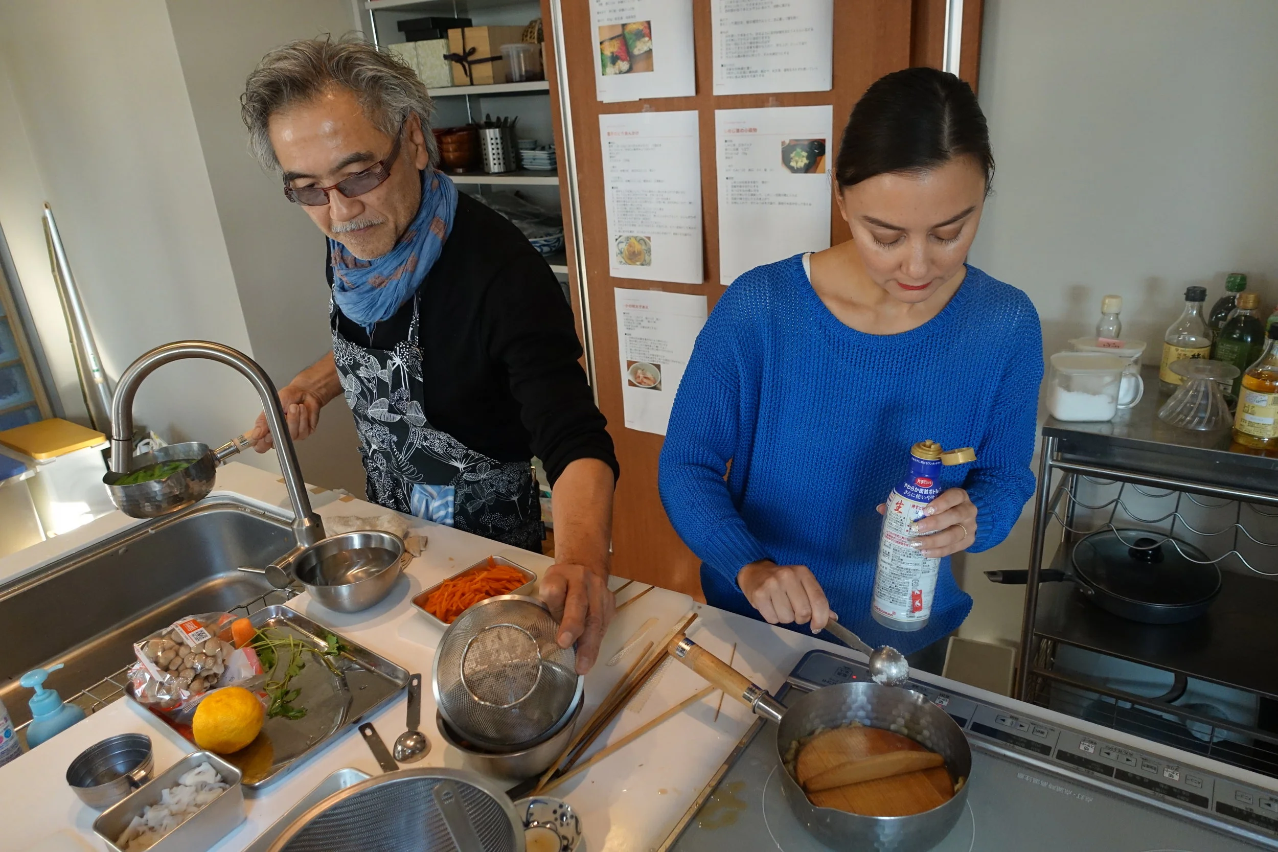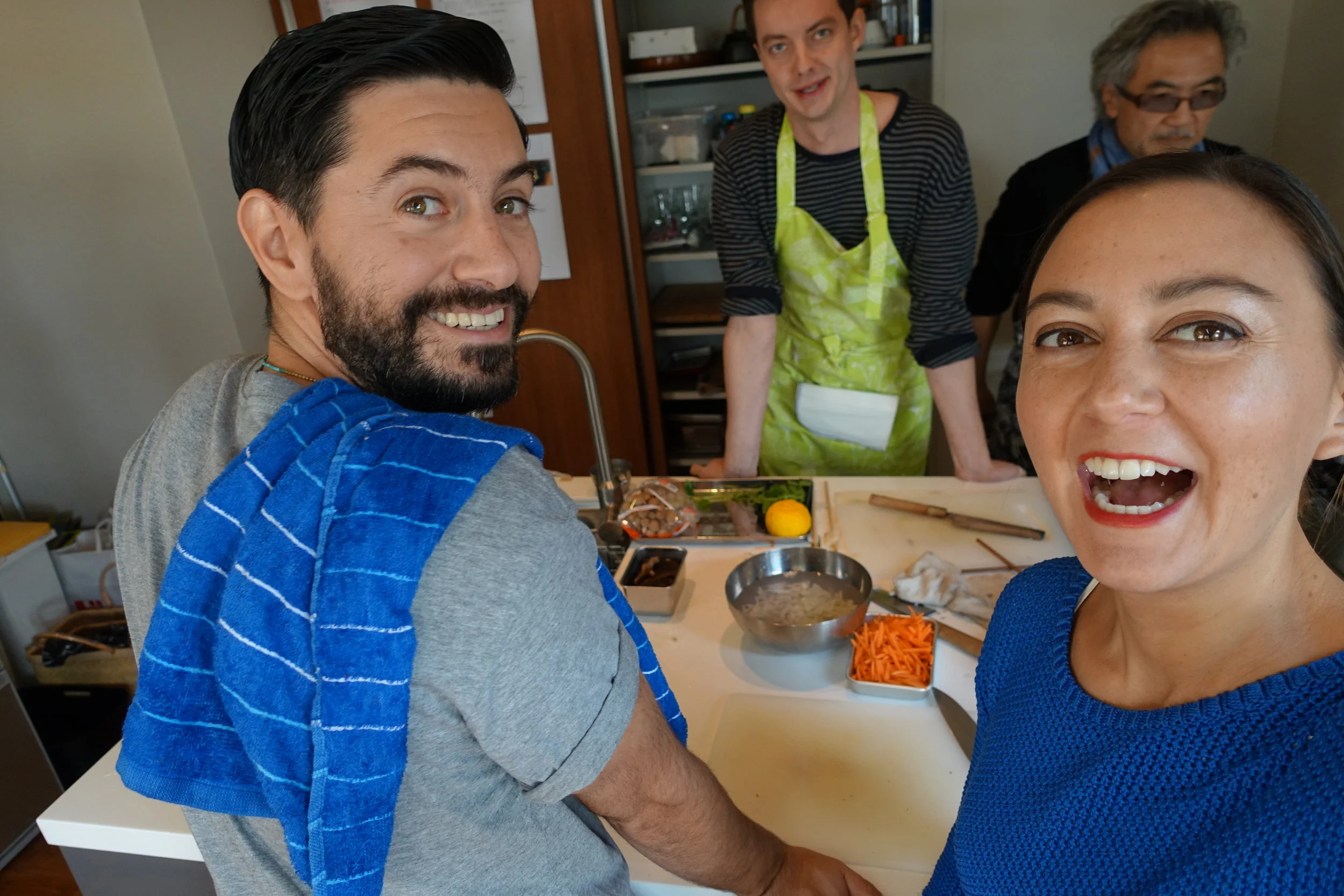 One thing I'd been really wanting to do in Japan was to do a Japanese cooking class. Most of the ones I'd seen online seemed really expensive and did things like make sushi which I've already done a few times. Our mate So came to the rescue (again) because his Dad very conveniently runs cooking classes from his office space in Shinjuku. Keen to try out his classes on English speakers, Adam, myself and one of their Airbnb guests became cooking class guinea pigs which was a win for everyone involved. It took the better part of the afternoon and we ended up cooking things I've never cooked before and had a pretty great feast by the end of it.