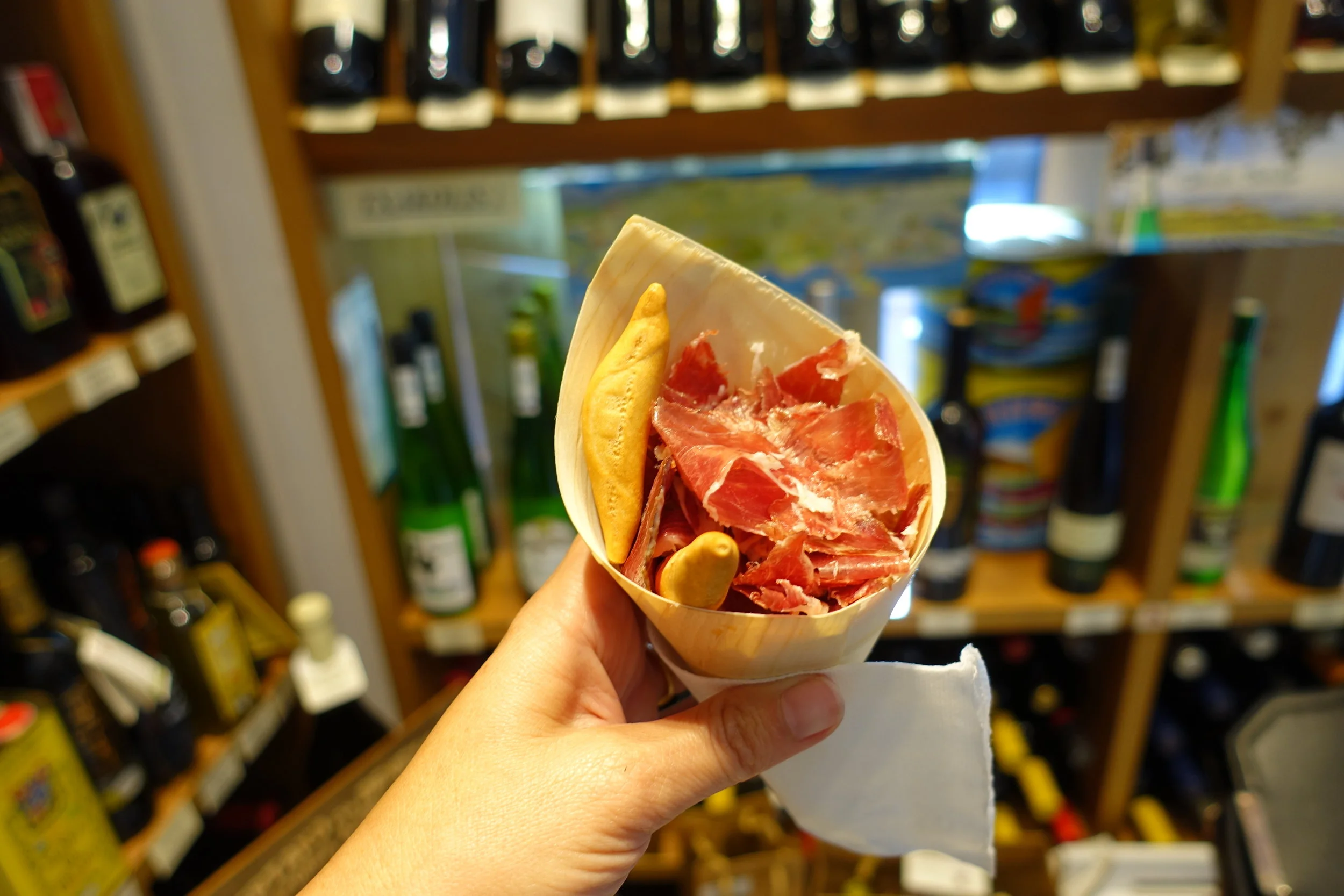 While walking around the old town we spotting a place selling cured meat in a cone. Naturally, we got it.