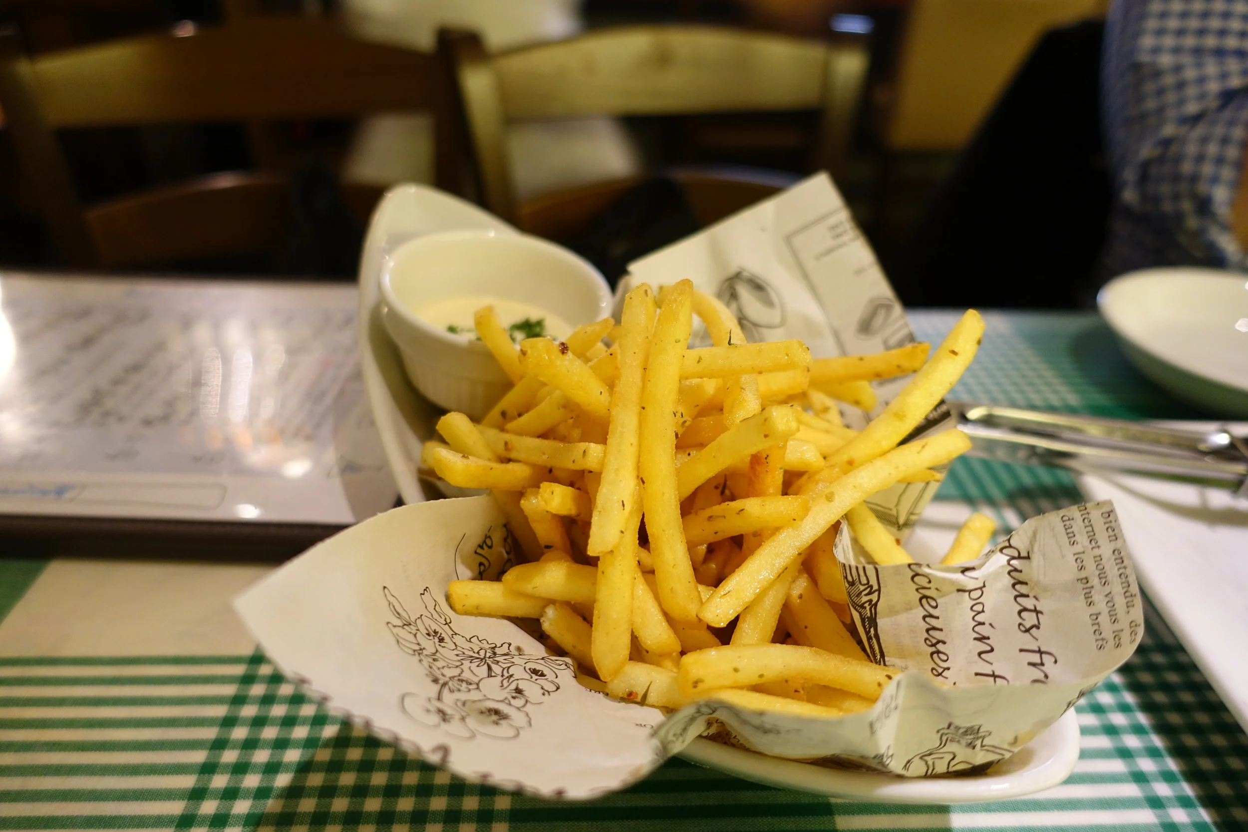 Fries with anchovy mayo are so damn good. My heart stops and thighs grow fatter just thinking of these.