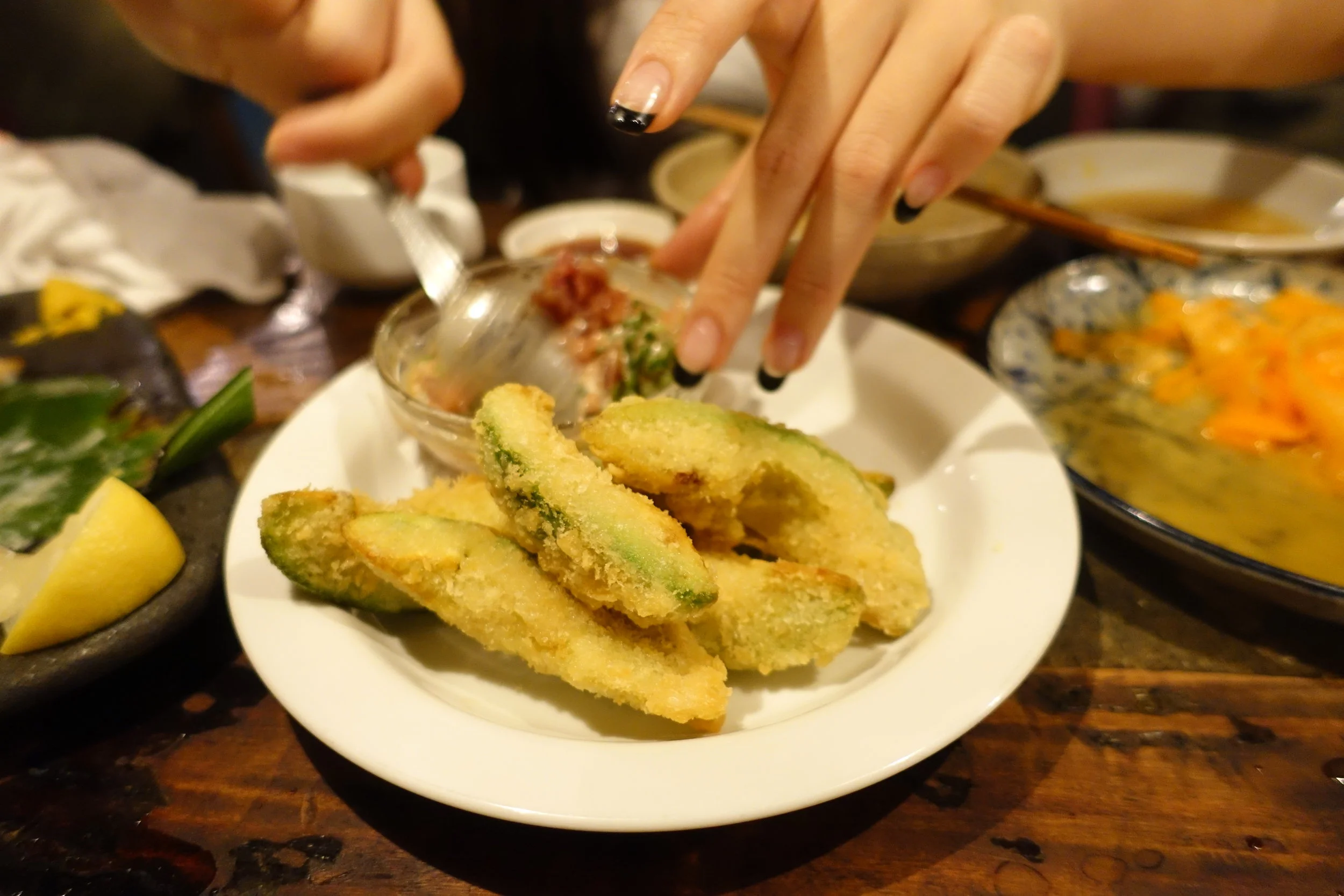 Deep fried avocado and Lani's amazing nails.
