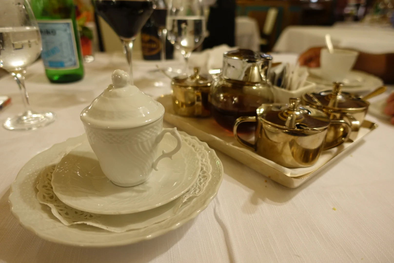 Finishing off dinner with an espresso. With a lid. Served with four kinds of sugar. Good night.