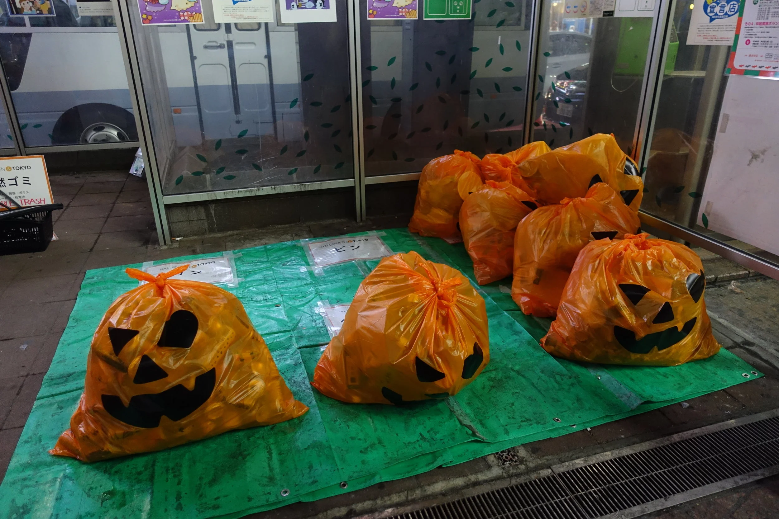 In an effort to keep the streets tidy during this time of year, there were a bunch of people assigned to help clean up or to direct people to rubbish bins. Which look like this. Themed garbage bags! Nice touch.